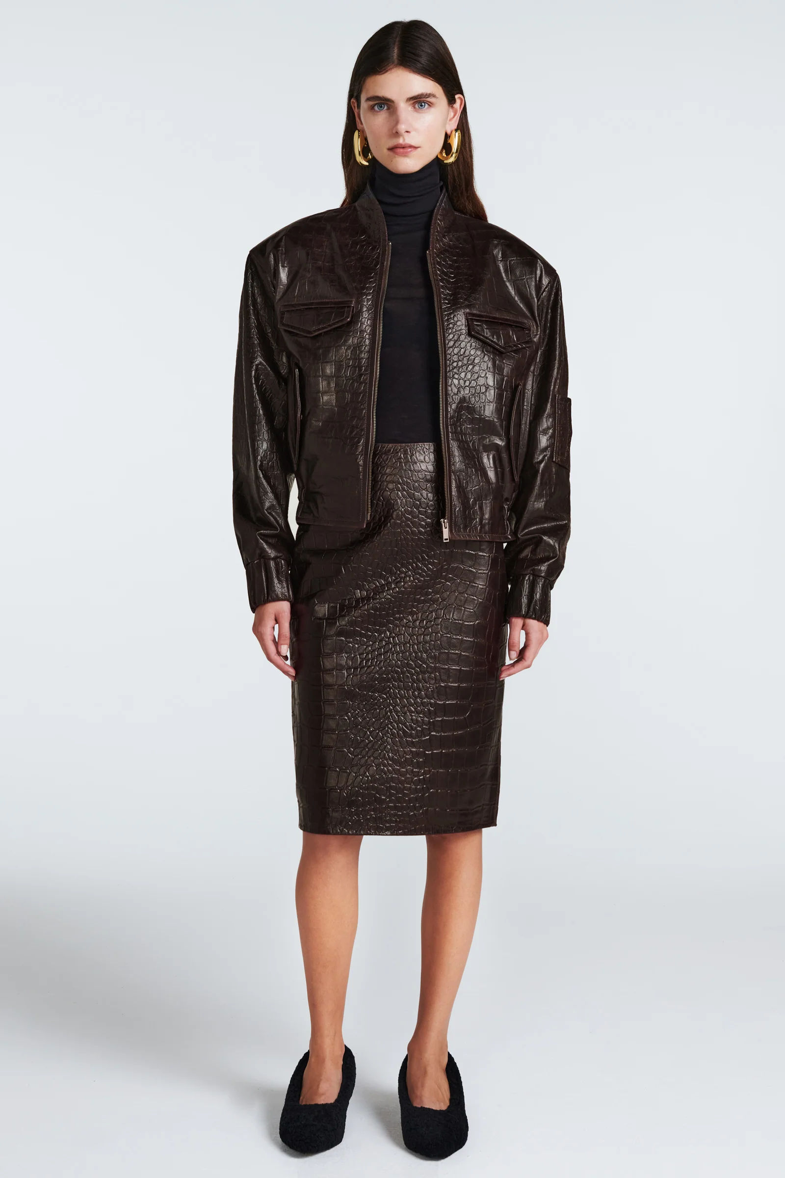 - Styled with Chloe Croc Leather Skirt