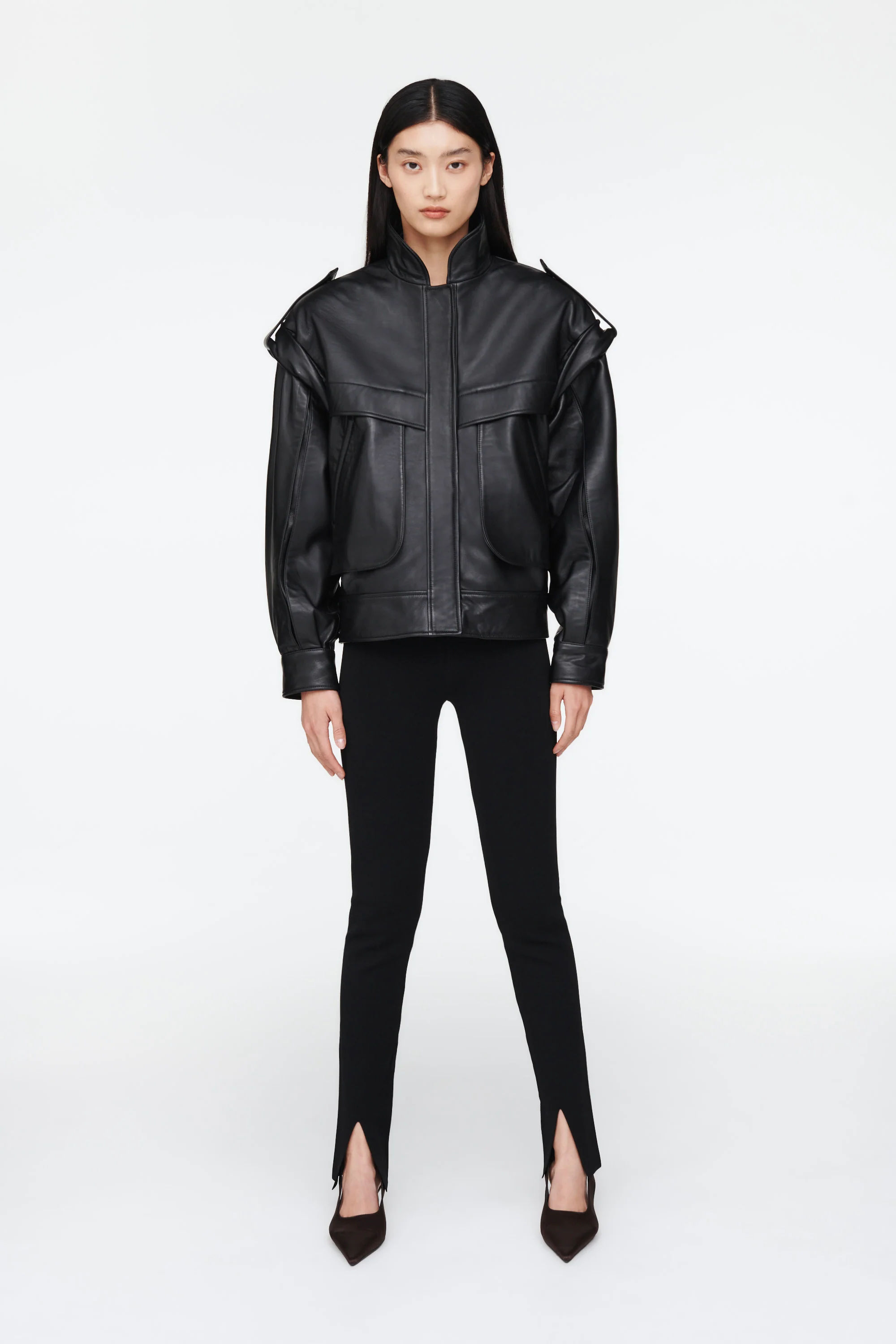 This soft leather jacket plays with proportion to perfection. We love the boxy cut teamed with epaulettes and trench coat-style gun flaps, which house beautifully concealed, slanted pockets for a practical touch. Add subtle press fastenings and a gently rounded collar and you have the perfect jacket.