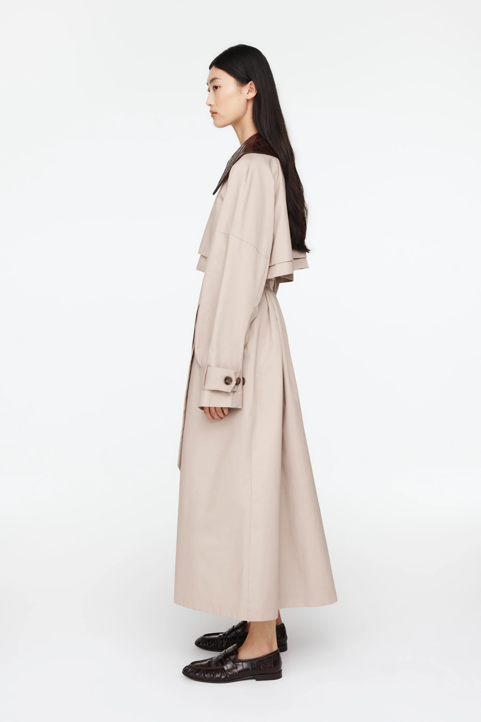 Our Juliet canvas trench coat trimmed with leather, puts a contemporary spin on a classic. Designed for a relaxed fit with a cinching waist belt this is the perfect transeasonal investment piece.
