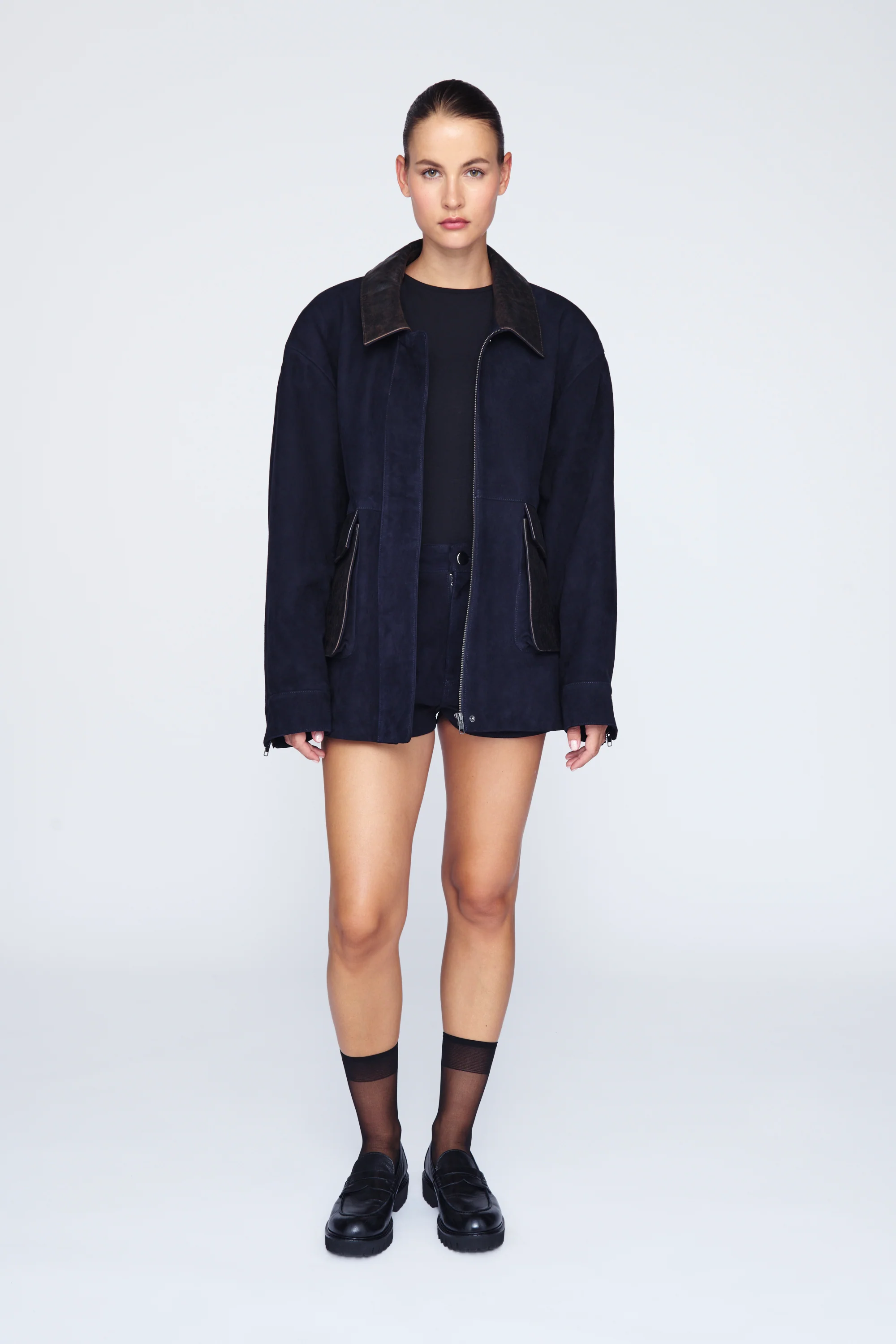 - Styled with Catherine Suede Shorts.