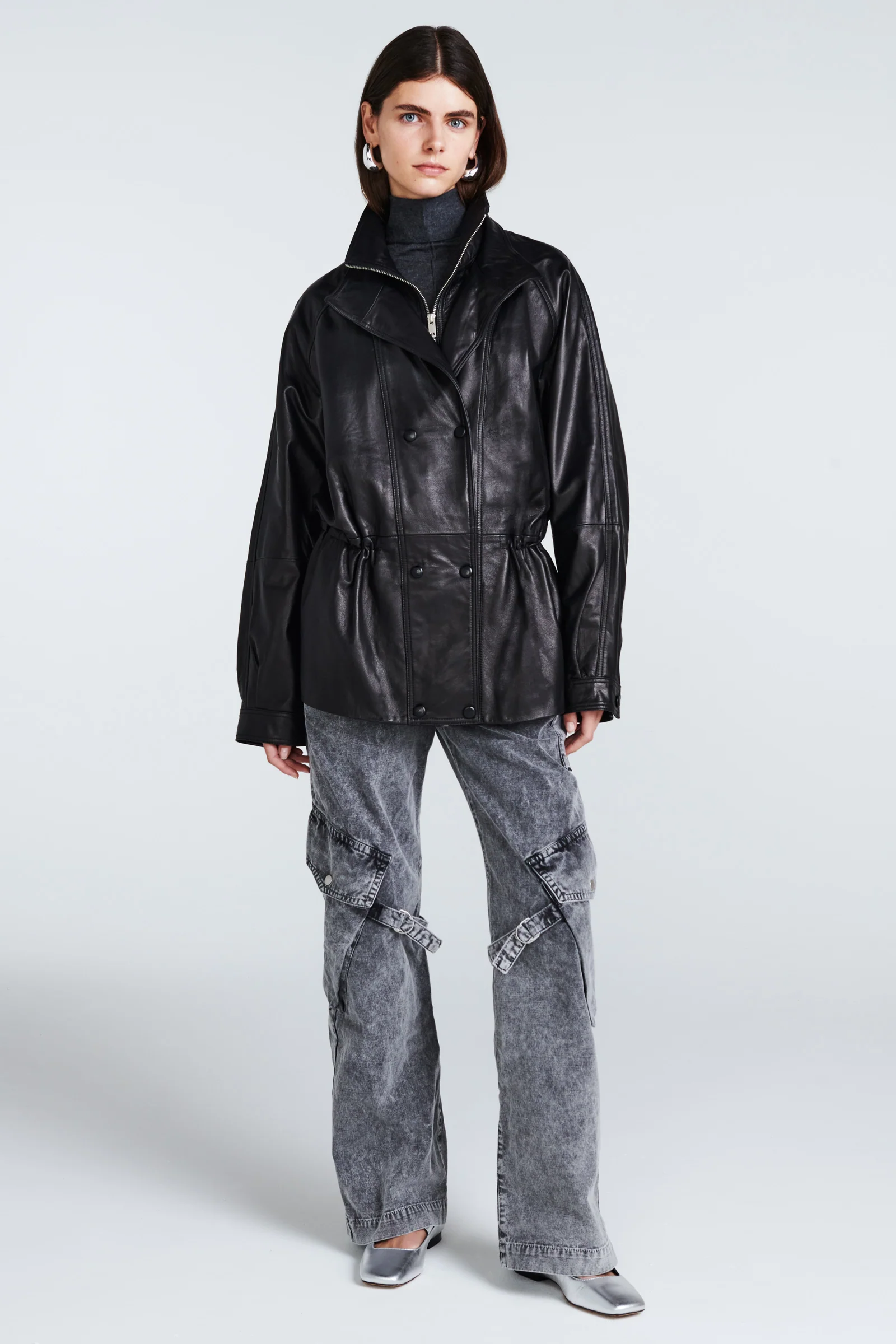 Our Scarlett jacket is the perfect throw and go style. With a double collar, barrel sleeves and a waist that can be cinched to suit, it's a head turning jacket that can be easily dressed up or down.
