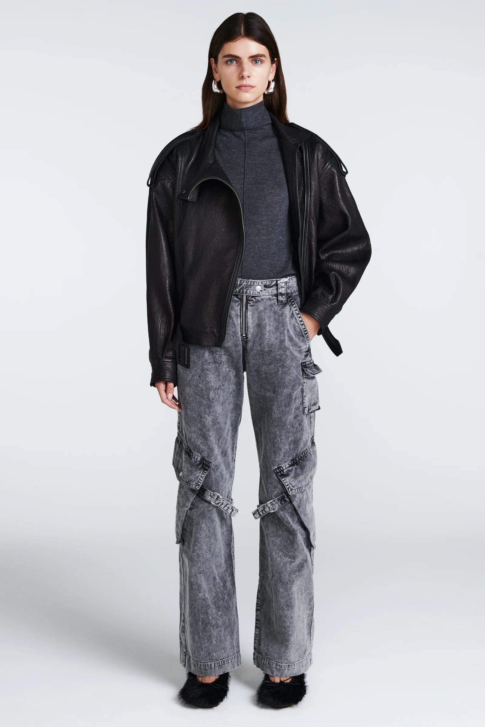 We especially love the high neck of this jacket, which is bound to capture attention. Crafted from exceptionally soft, high-quality grained leather, it boasts exquisite tailoring. Moreover, the numerous details in its design elevate it to a new standard of luxury.