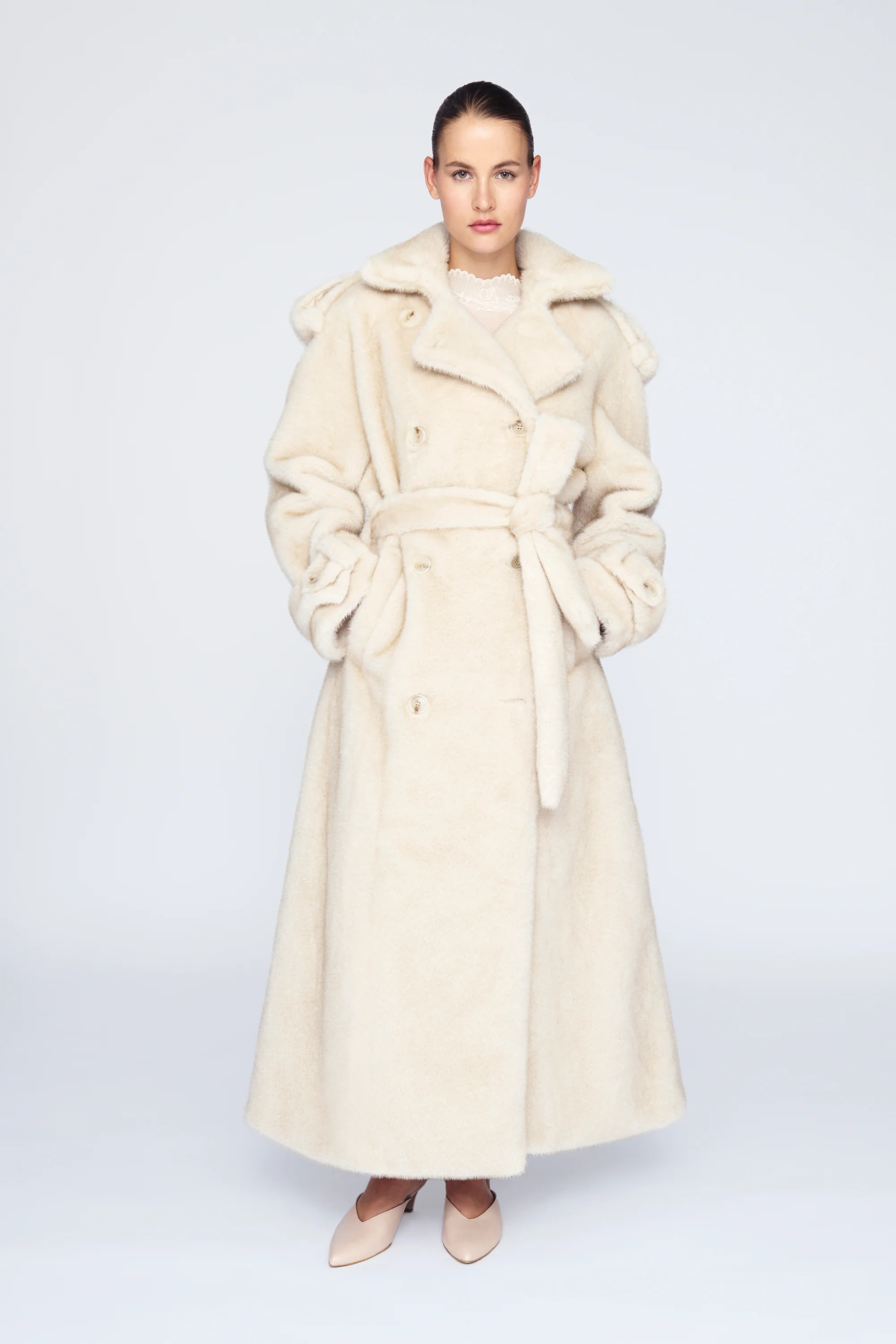 The Thalia Coat is a statement piece crafted from ultra-soft luxury faux fur, offering warmth and elegance in equal measure. Its timeless silhouette and plush texture make it the perfect finishing touch for any sophisticated winter ensemble.
